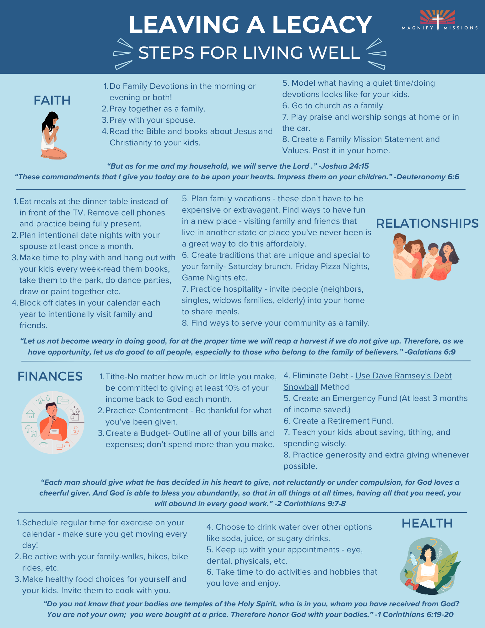 Download our FREE resource, Leaving a Legacy - Steps for Living Well, and start putting into practice steps to build God-honoring habits that allow you and your family to live life to the fullest.